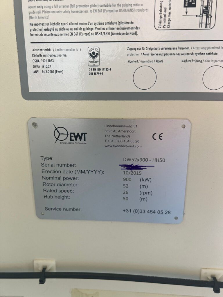 EWT 900kw on 50m two section tower dismantled and loaded to buyers trucks