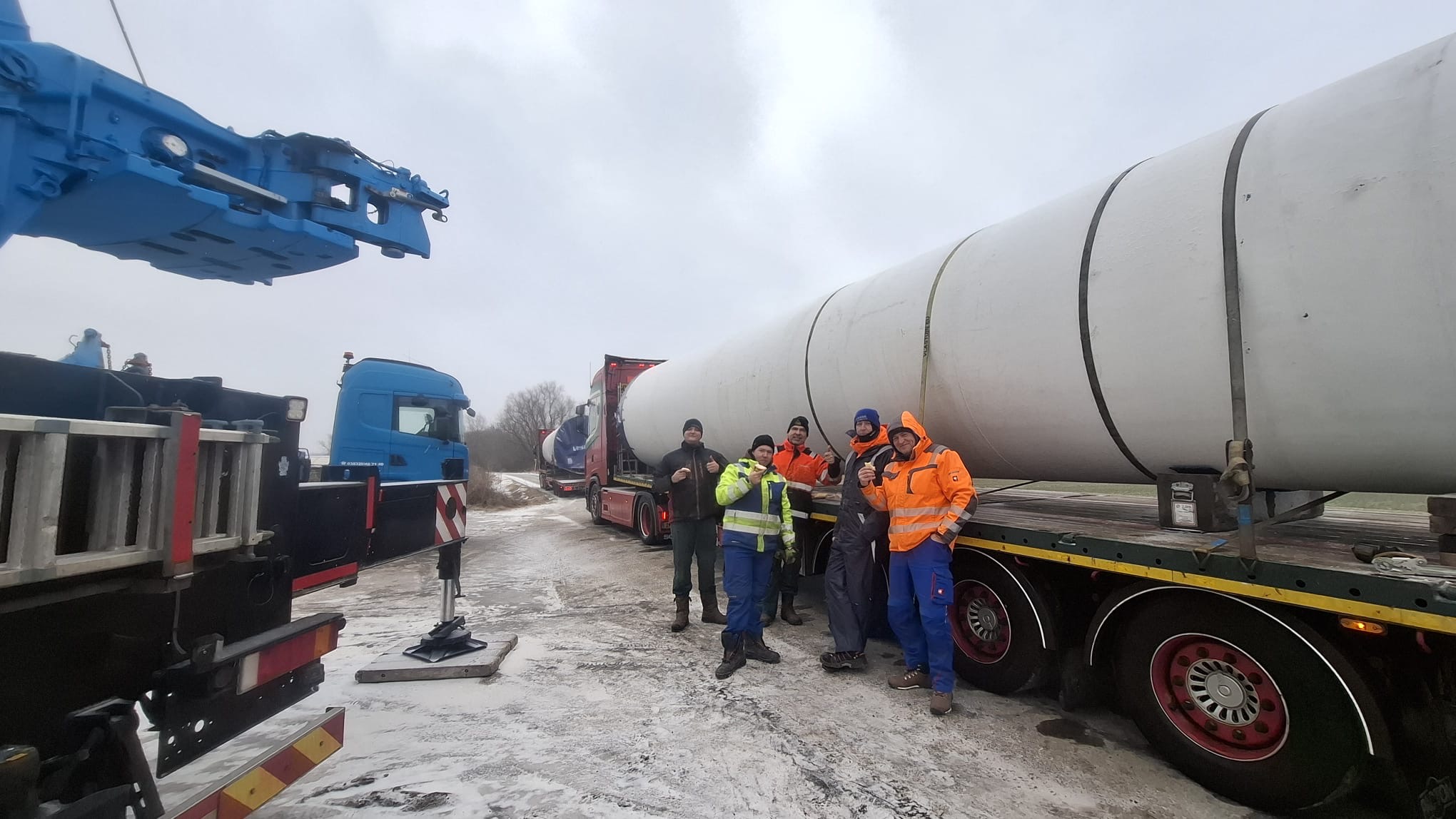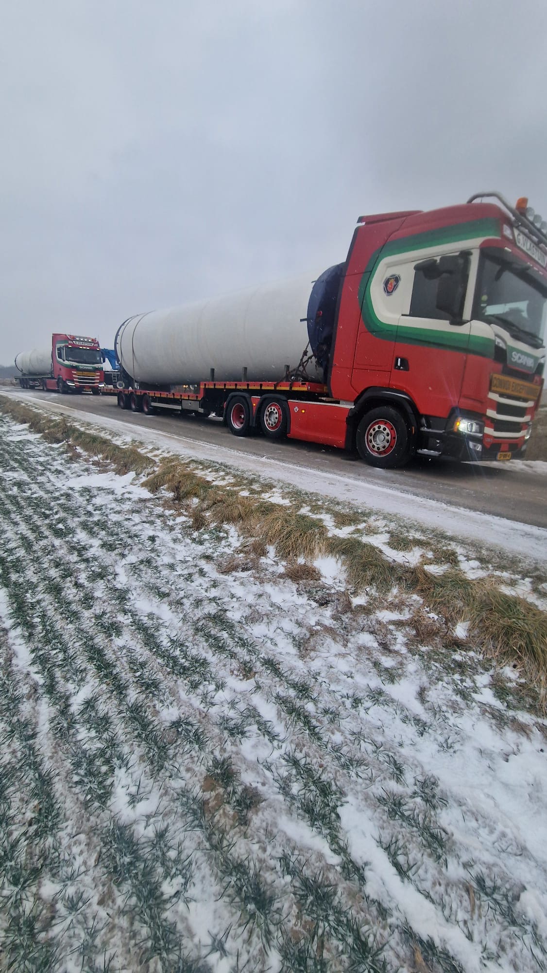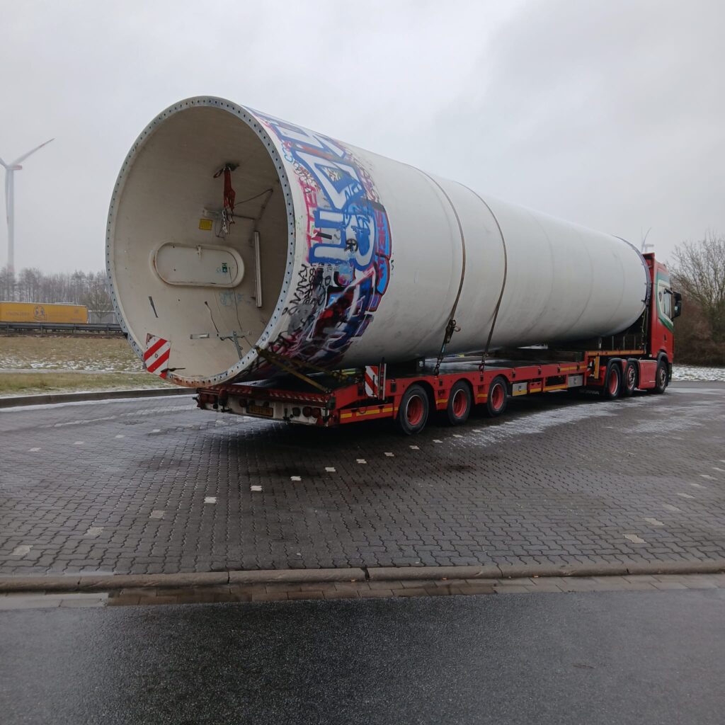 Loading and transport of a V39 40m tower North Germany to Northern Ireland February 26 Well done guys temperatures —3 degrees cold 🥶 Great job