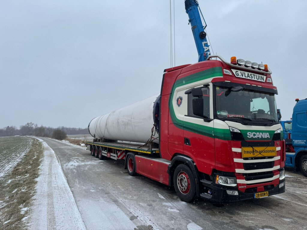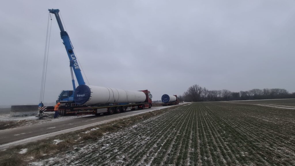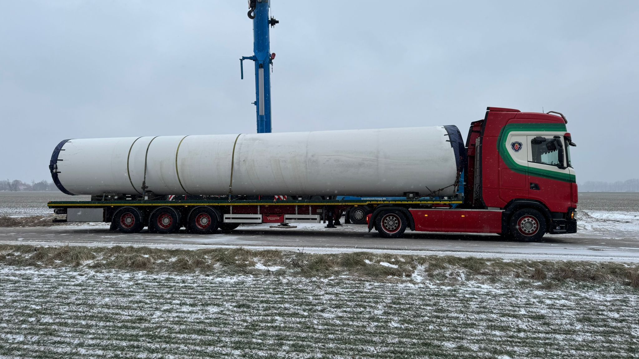 V39 40m three section tower loaded in North Germany February 2026