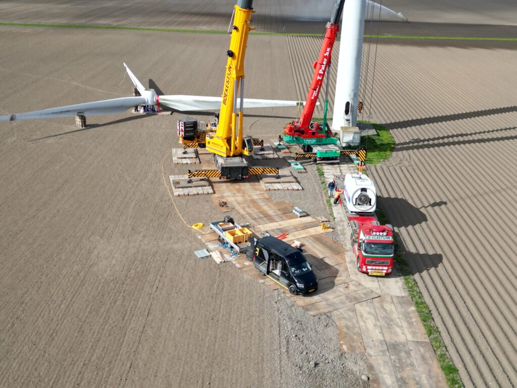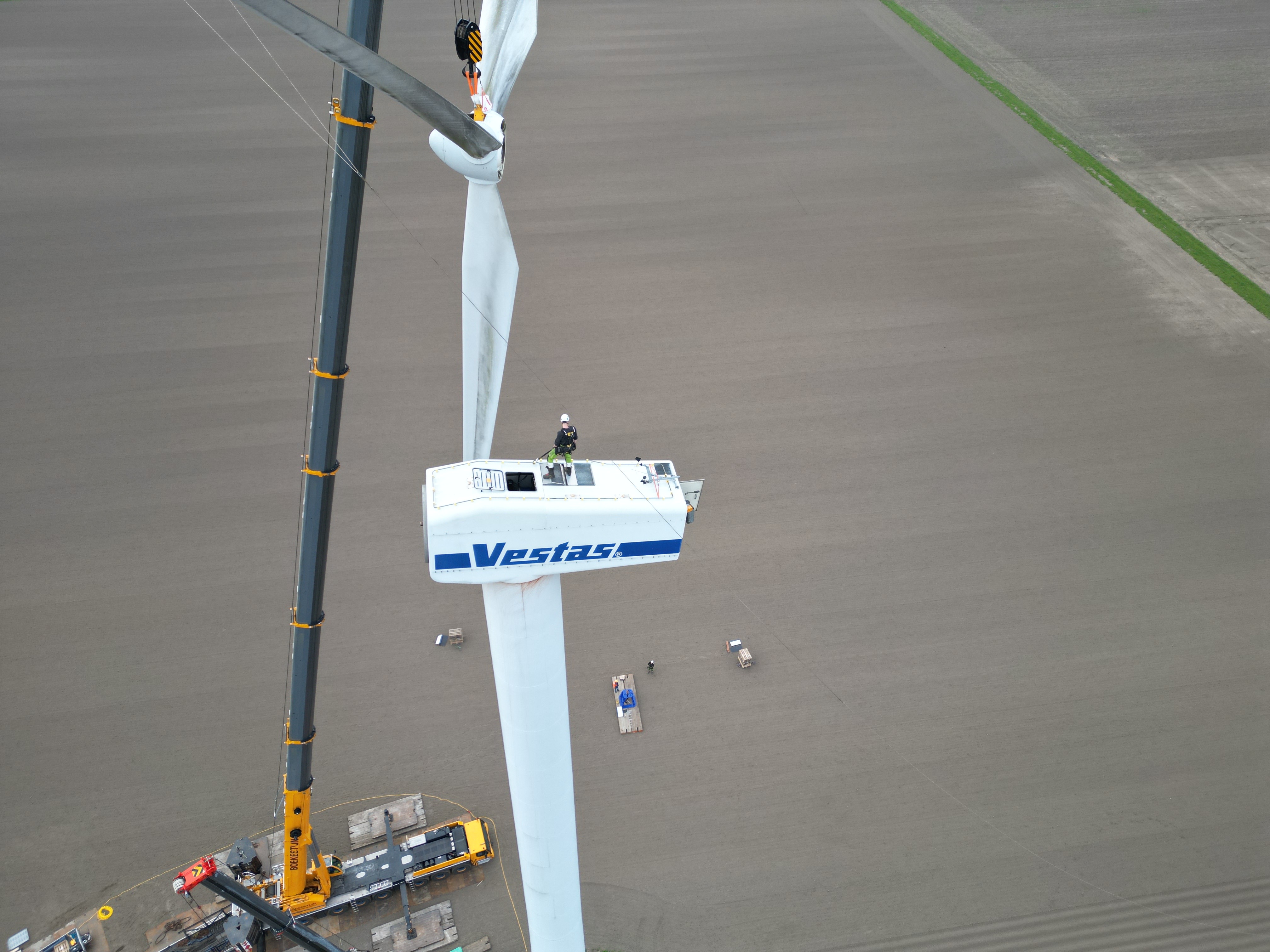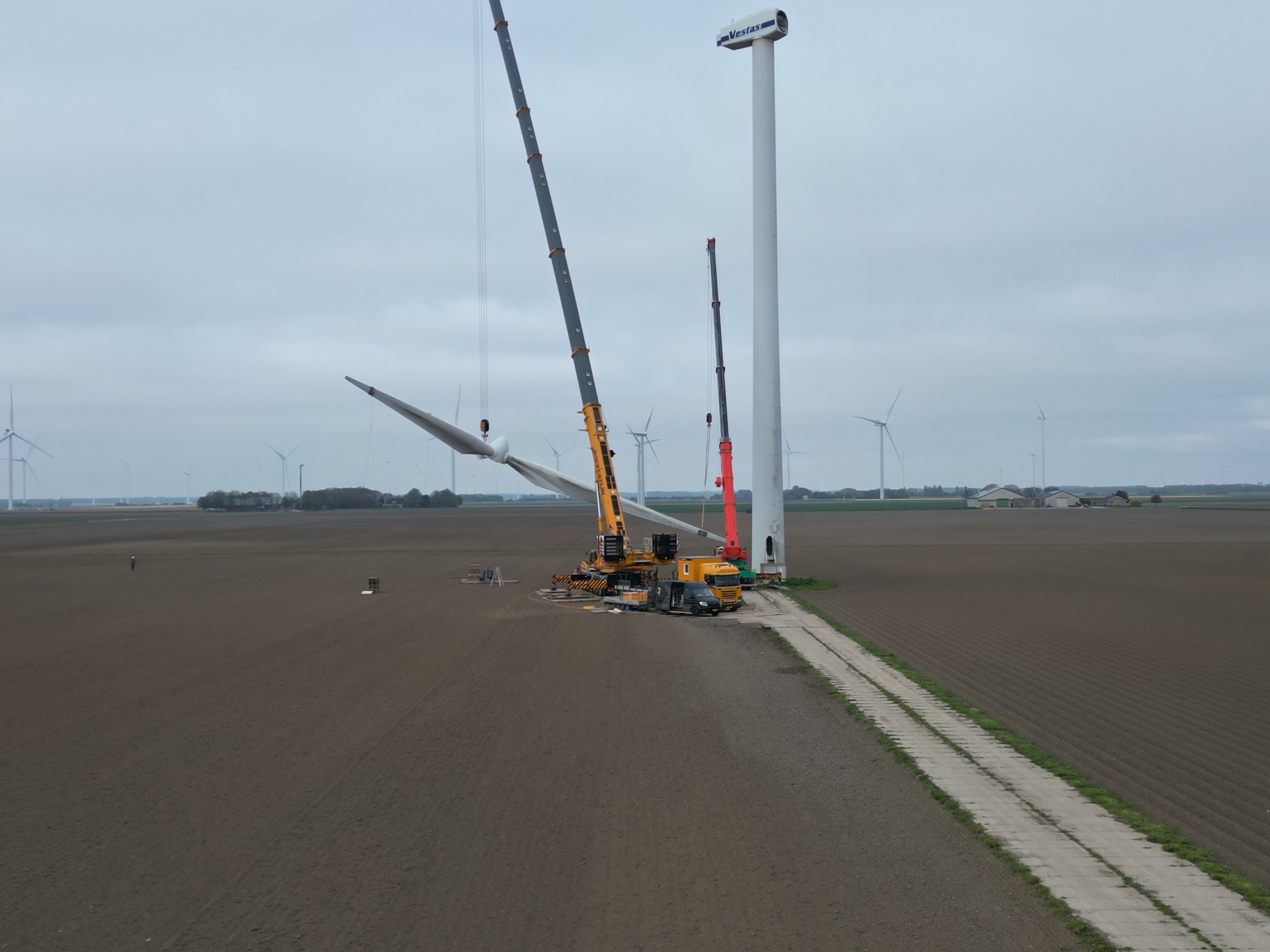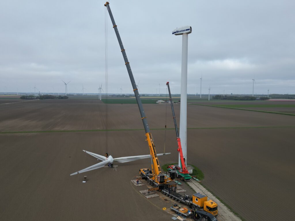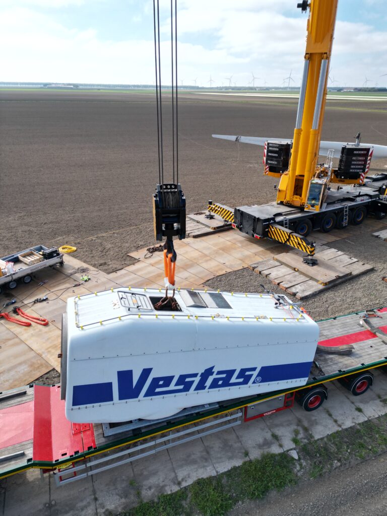 Vestas V52 on 55m HH dismantling loading Holland April 2026