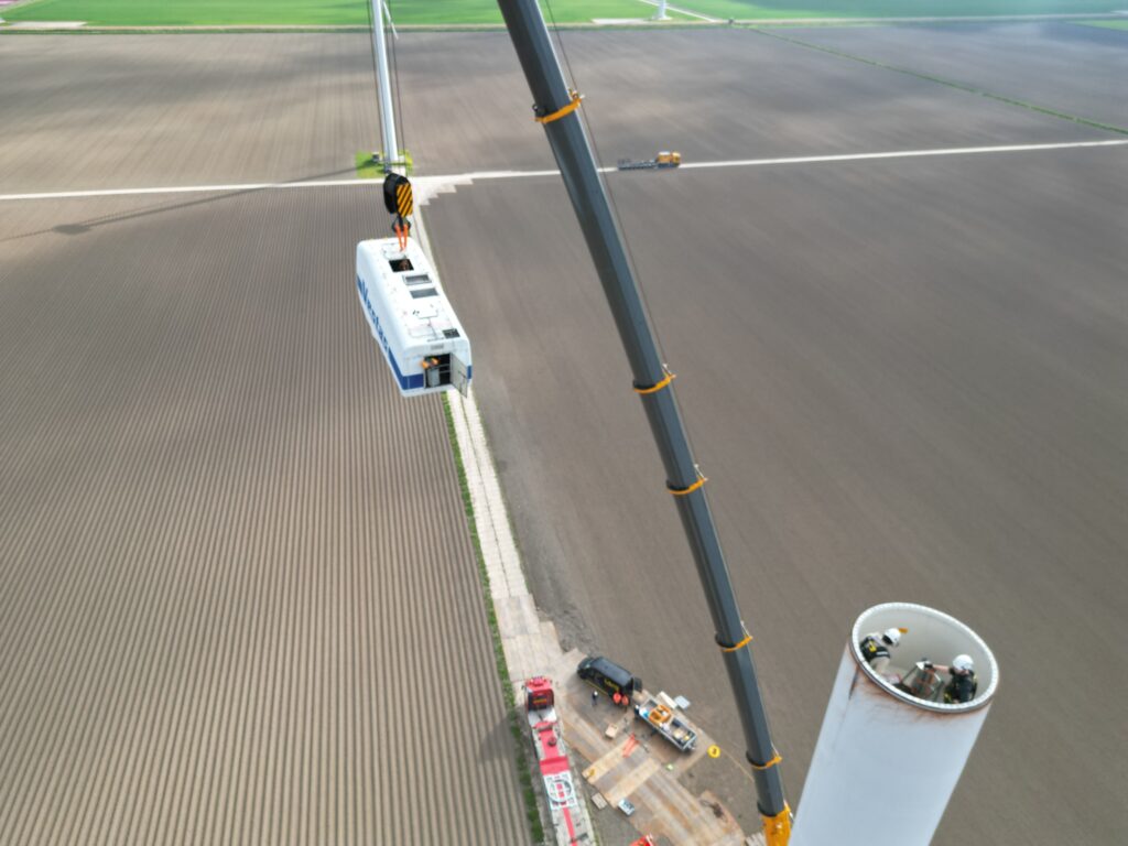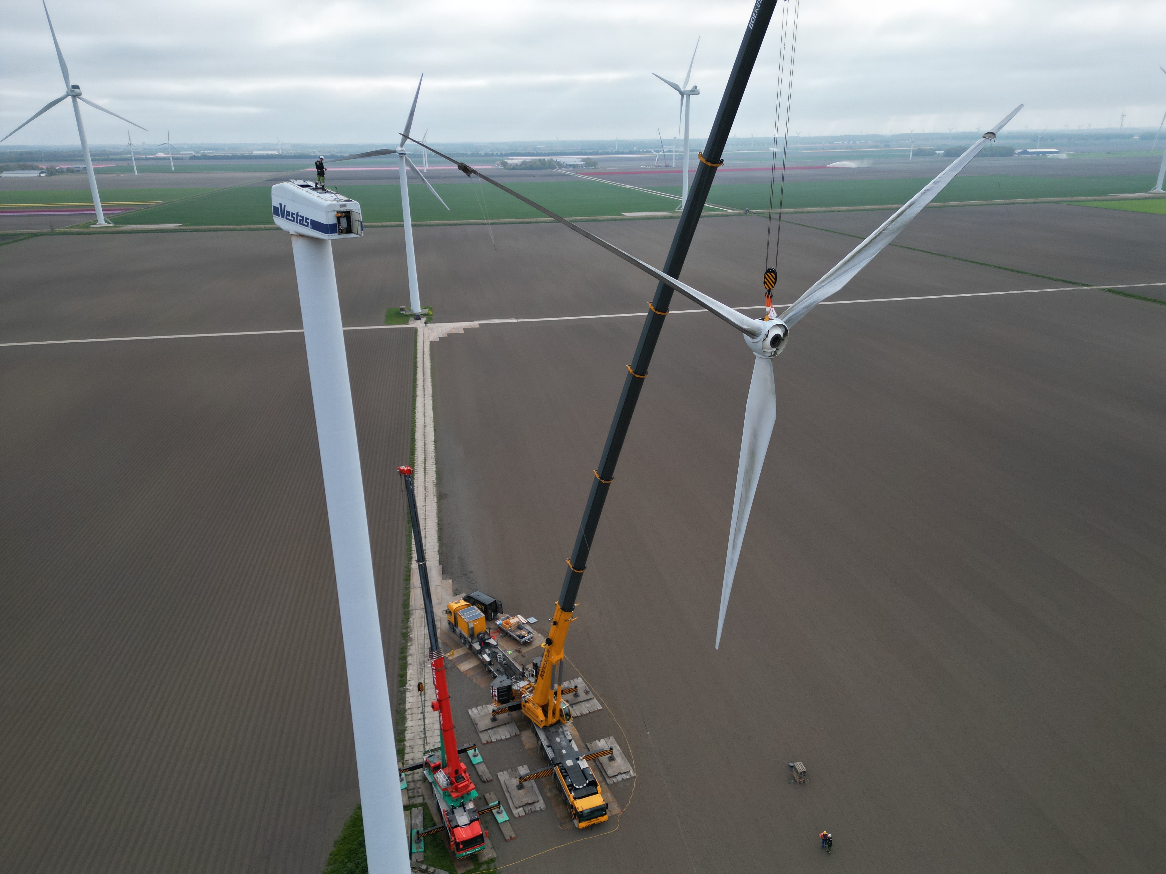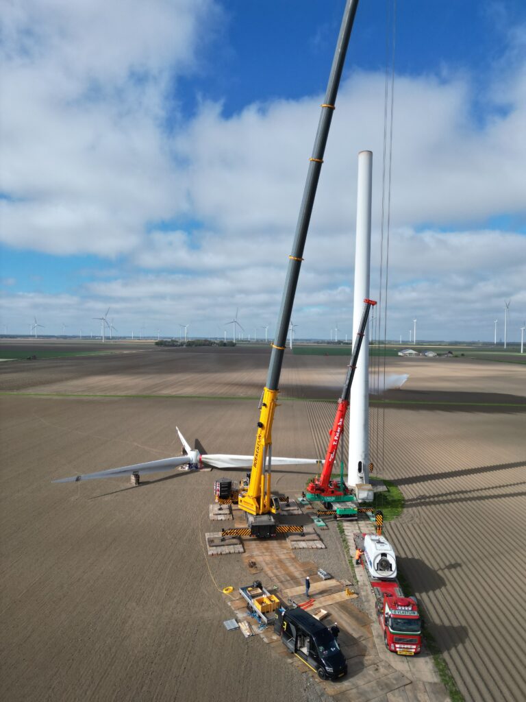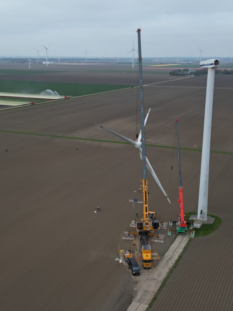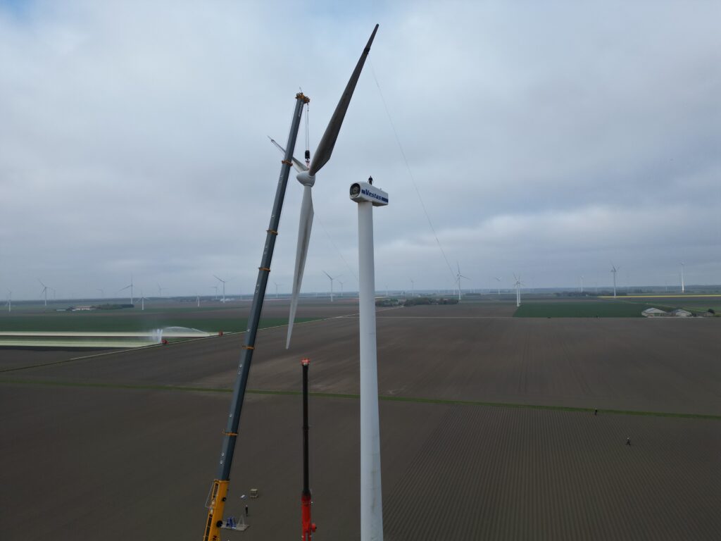 Vestas V52 on 55m HH dismantling loading Holland April 2026